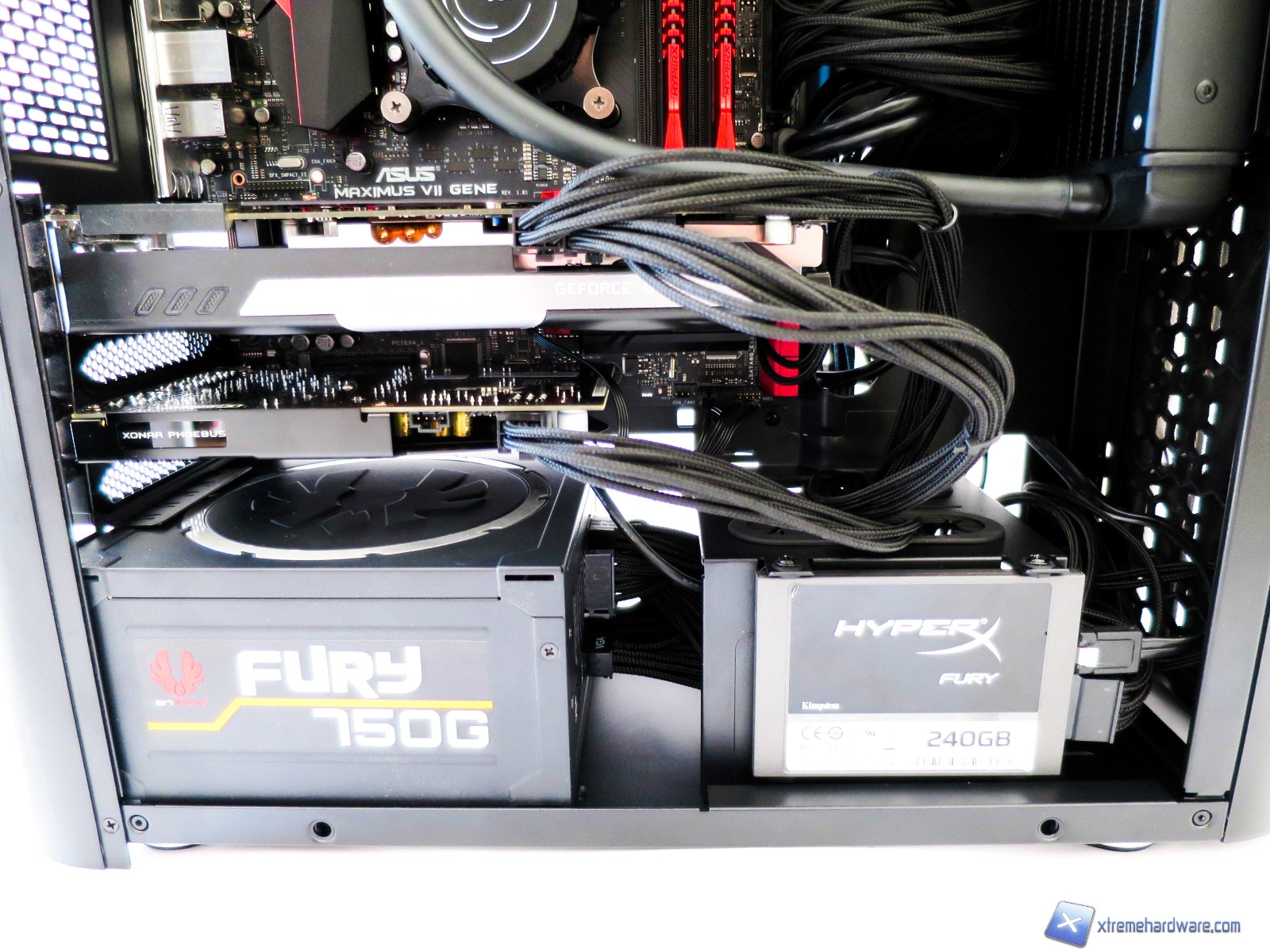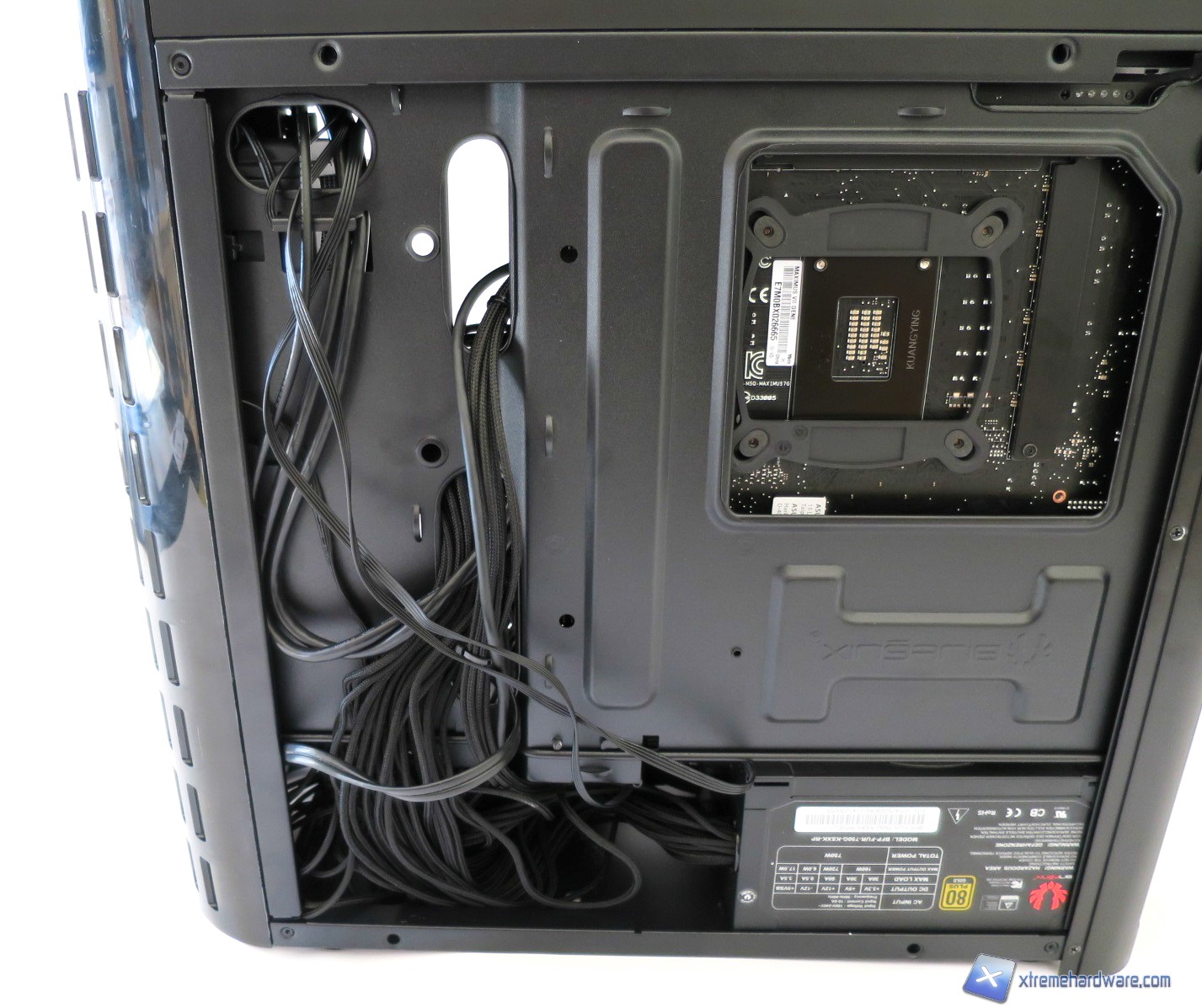 Lo spazio complessivo del BitFenix Pandora permette comunque un adeguato cable management (varia da configurazione a configurazione) anche se non possiamo sfruttare il foro per far passare correttamente il singolo cavo 8pin EPS.