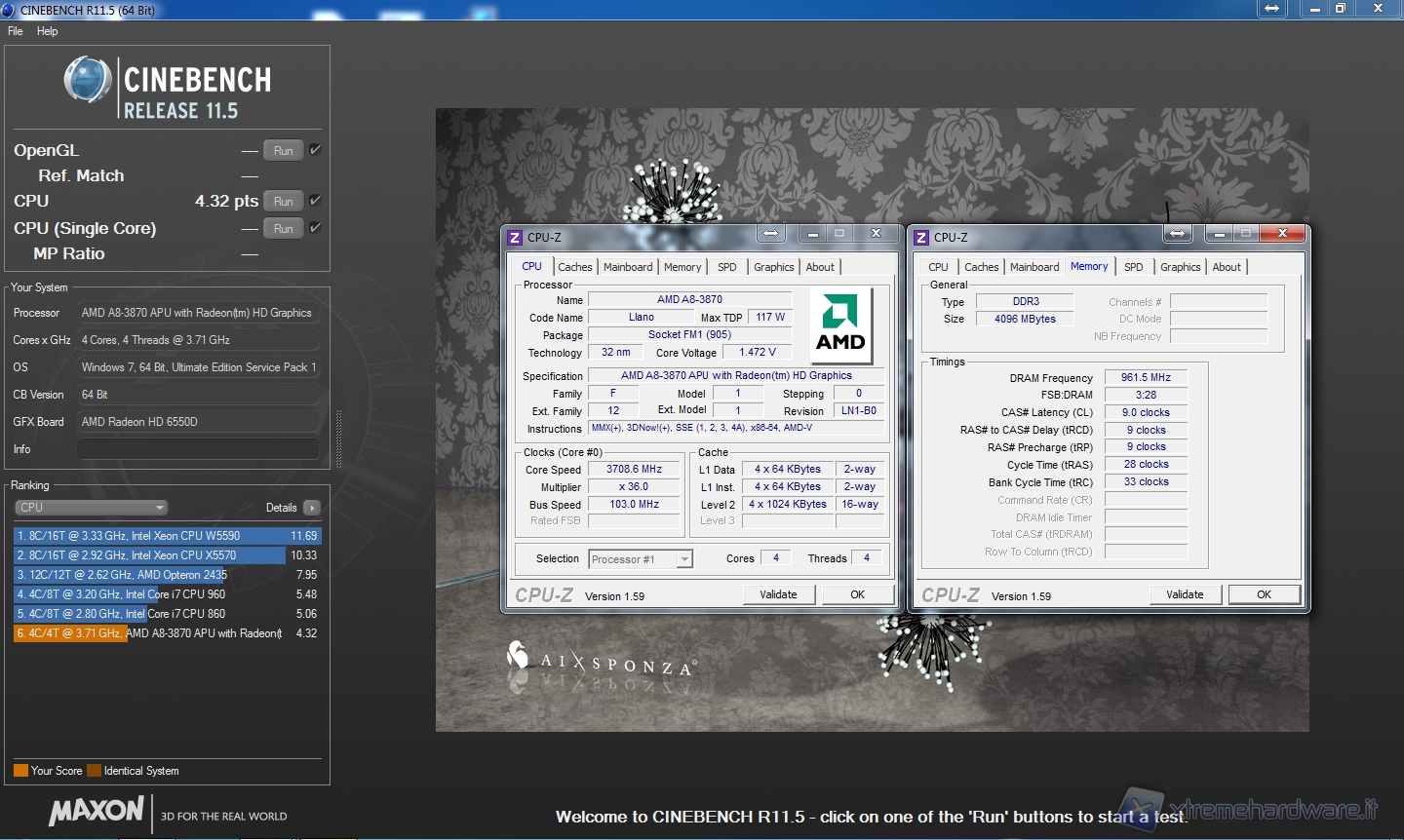 Notiamo che il precedente test, quello sull’A8-3850, era stato effettuato portando il voltaggio a 1,5V; teniamo a precisare che anche portando il voltaggio a quella soglia, l’A8-3870K non ci ha permesso di chiudere nessun bench ad una frequenza maggiore di 3708MHz.