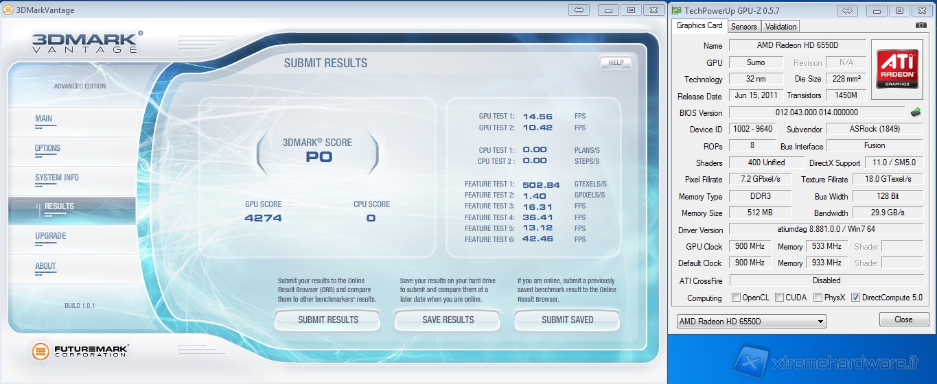 Un netto miglioramento invece l’abbiamo registrato nell’overclock della IGP HD 6550D che è riuscita ad arrivare a 900MHz benchabili, al contrario della precedente soluzione che si fermava a 870MHz.